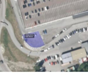 Biler kan passere forbi inn i p-hus og på flatparkeringen ved p-huset.